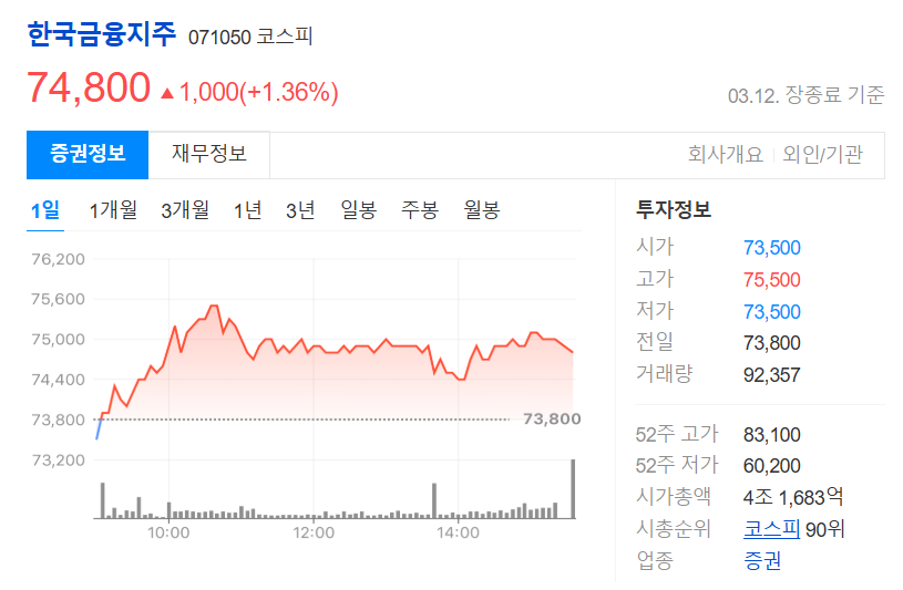 한국금융지주(종목코드: 071050)는 국내 대표적인 금융 지주사로, 자회사인 한국투자증권을 통해 강력한 증권 및 투자은행(IB) 사업을 운영하고 있습니다.